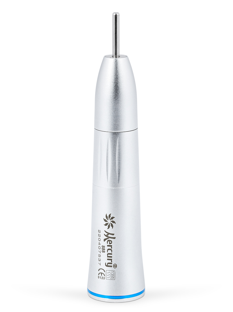 Прямой наконечник Mercury 888 отлично подходит для стоматологических работ любой сложности. Он незаменим для работ по изготовлению протезов и имплантов. Помимо этого, особенности его конструкции позволяют оказывать повышенное давление на режущий инструмент, без риска появления вибрации.