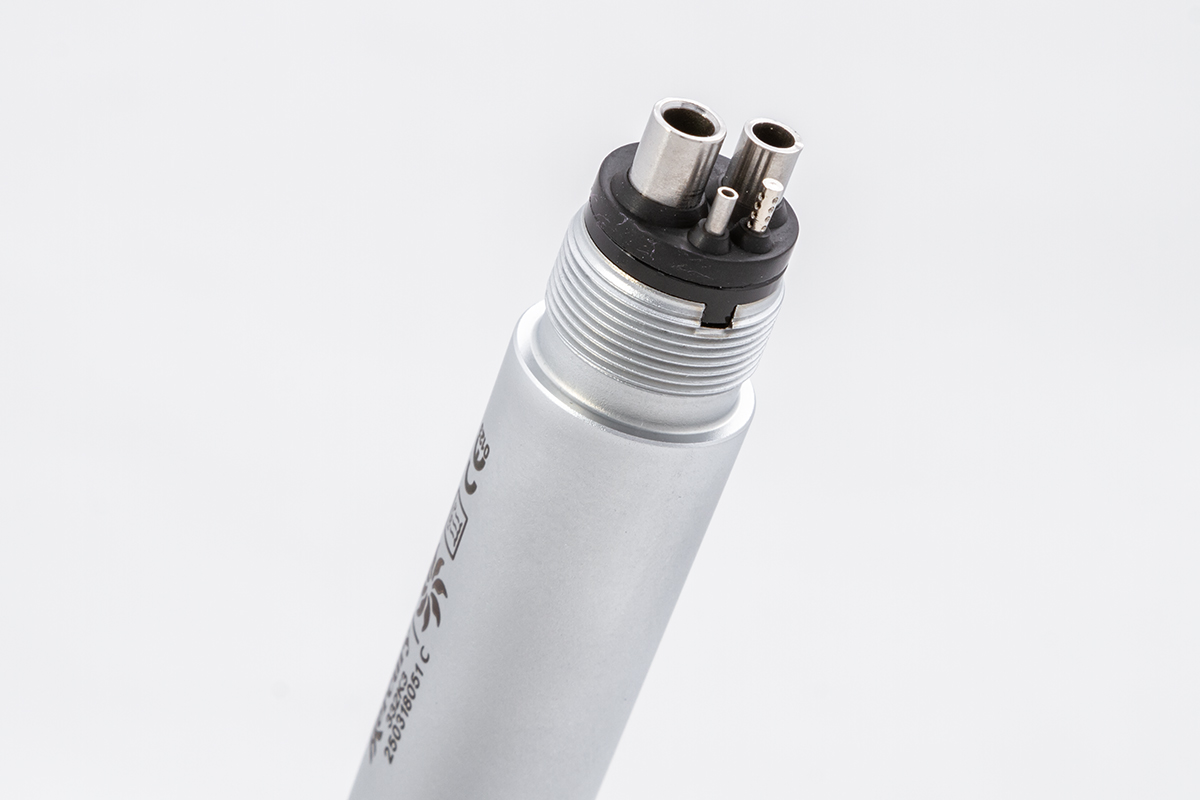 Благодаря высокому давлению воздуха, достигающему 2,4 Мпа, бор наконечника способен разгоняться до 400 000 оборотов в минуту. Благодаря этому достигается быстрый и качественный эффект. Функцию охлаждения выполняет пятиточечный спрей. Тип соединения устройства соответствует международным стандартам — Midwest 4.
