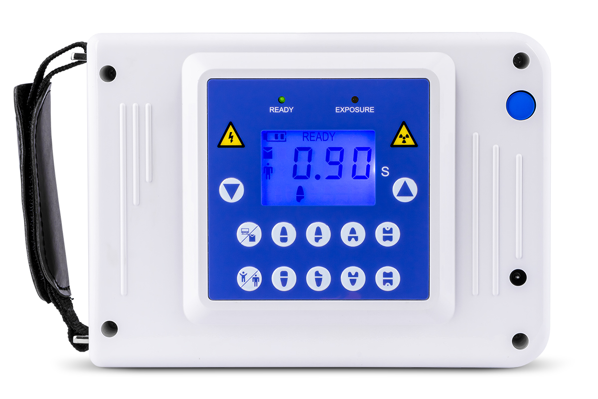 Дисплей панели управления достаточно большой и отображает все возможные функции рентгена: выдержка, тип зуба, пленка и датчик, вычислительная доза.