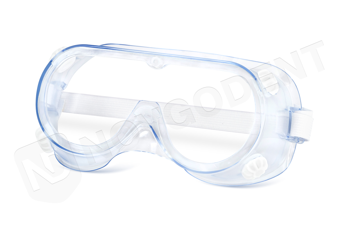 Корпус защитных очков выполнен из силикона, плотно прилегающего к лицу.