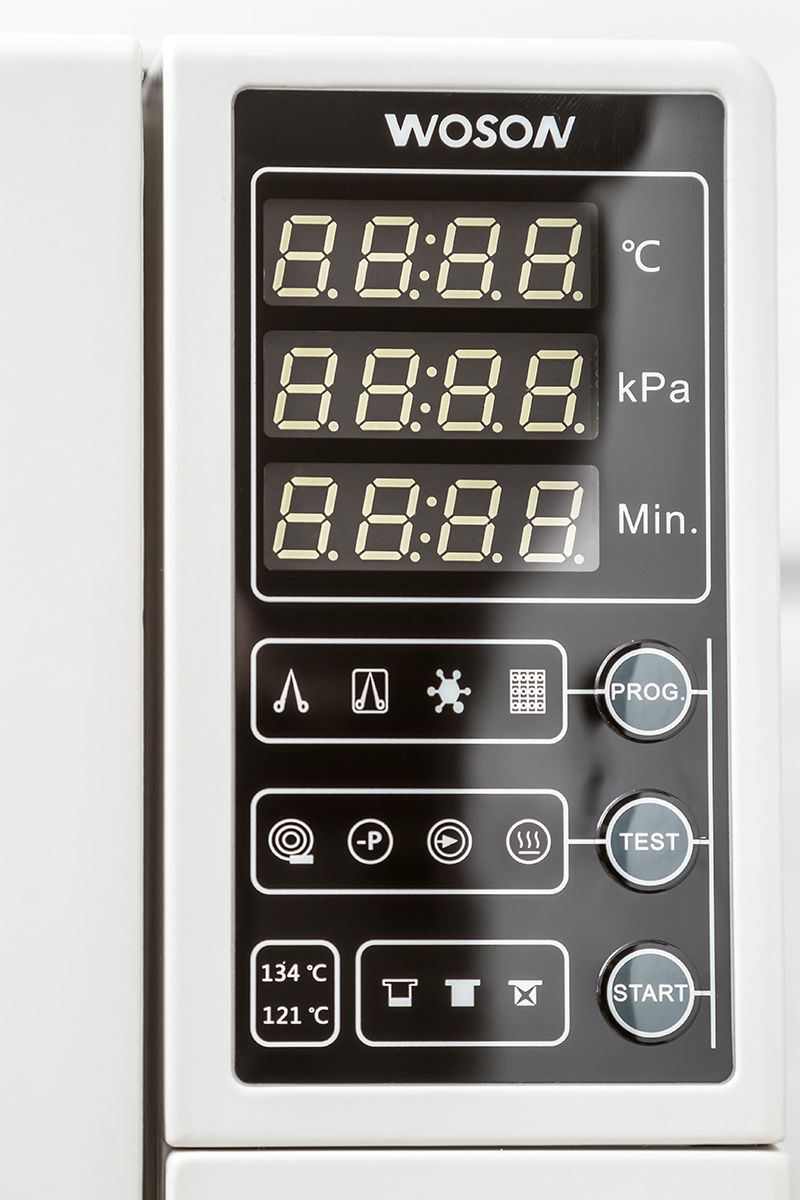 • Стандартный В-класс стерилизации с трехкратным вакуумированием и сушкой, остаточная температура простерилизованного инструмента менее 0,2%