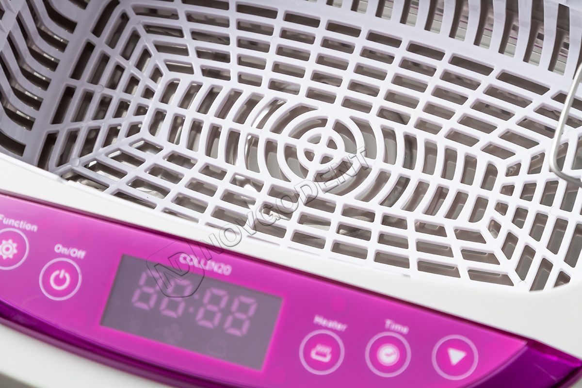 Удлиненный резервуар, панель управления с технологией измерения емкости. 2-х цветный LED дисплей, таймер режимов от 1 до 30 минут, дегазирующая функция.
