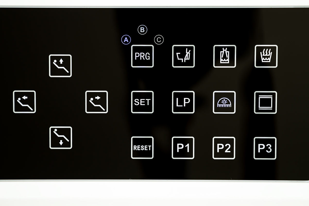 Также блок врача оборудован специальной сенсорной панелью управления Touchscreen. Эжекторный гидроблок размещен на штанге светильника, вращается вокруг установки, очень удобен в использовании для правшей и левшей. В гидроблоке используются электроклапаны системы Asco, производства CША, также встроены 2 емкости - для дистиллированной воды и для дезинфекции.