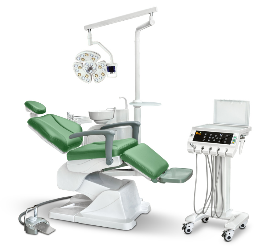 Блок врача подкатной, верхней/нижней подачей инструментов, есть четыре выхода М4 и пистолет для подачи воздушно-водяной смеси.