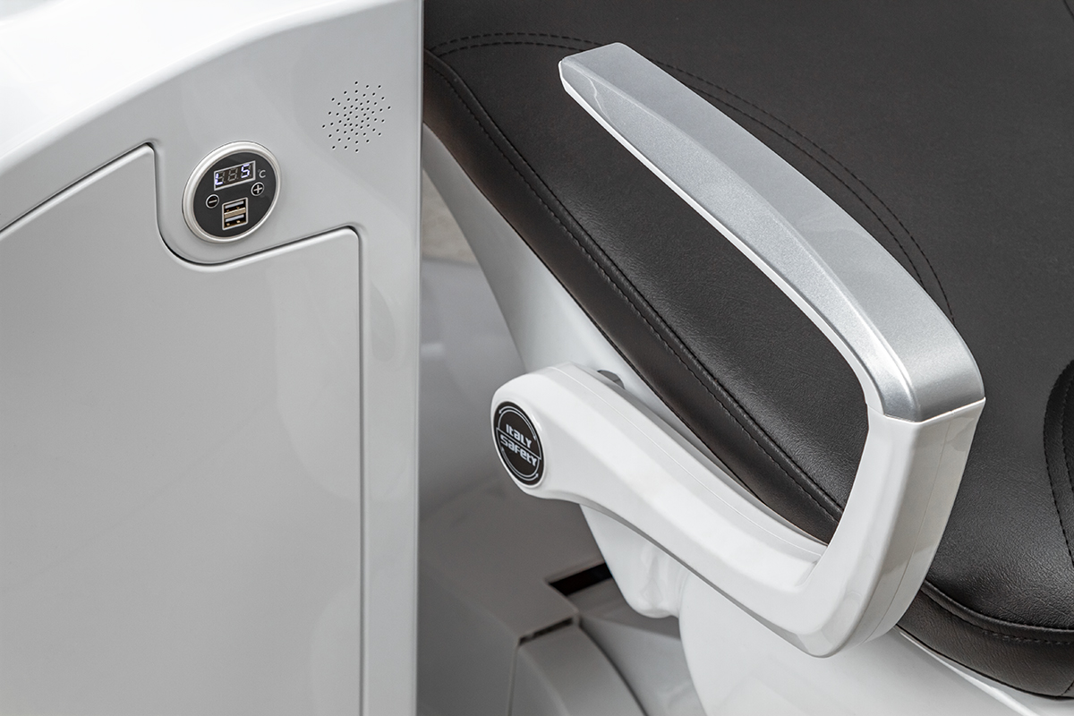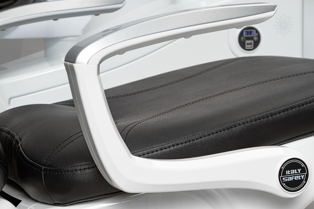 Шовная обивка из импортной фиброкожи, широкая спинка с металлическим антивандальным основанием, повышенная износостойкость и стильный дизайн, созданный итальянскими разработчиками. Кресло, которое влюбляет в себя и врачей и пациентовВстроенные опции для вашего удобства