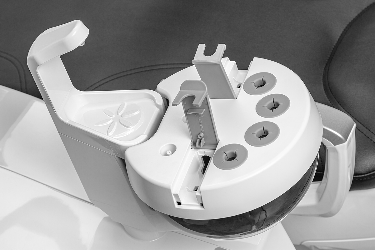 Управление теперь стало еще проще и нагляднее. Регулировка кресла вручную или выбор из 9 программируемых положений, управление инструментами и подробная информация о каждом, которая всплывает на экране, как только вы берете любой из них руки. Инновационность и комфортная работа с новым блоком врача на 6 инструментов.Идеальный обзор