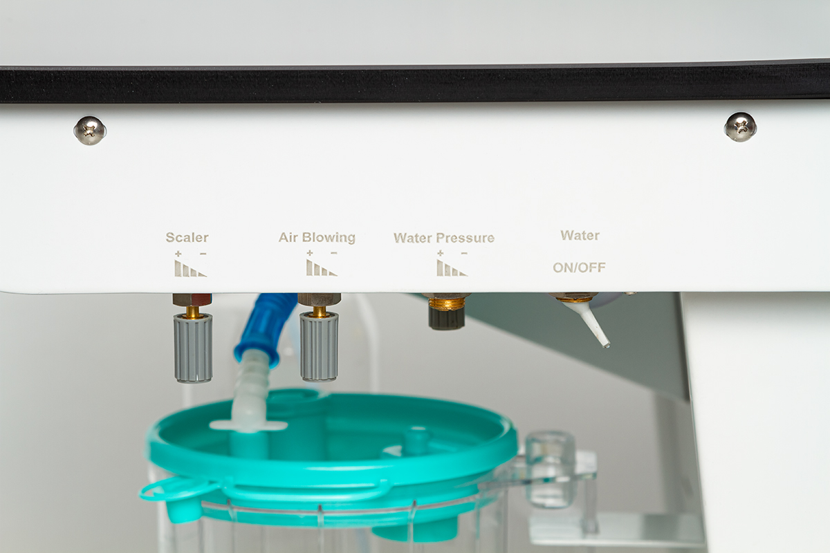 • В комплектацию входит трех-функциональный шприц, слюноотсос и скейлер с LED подсветкой.