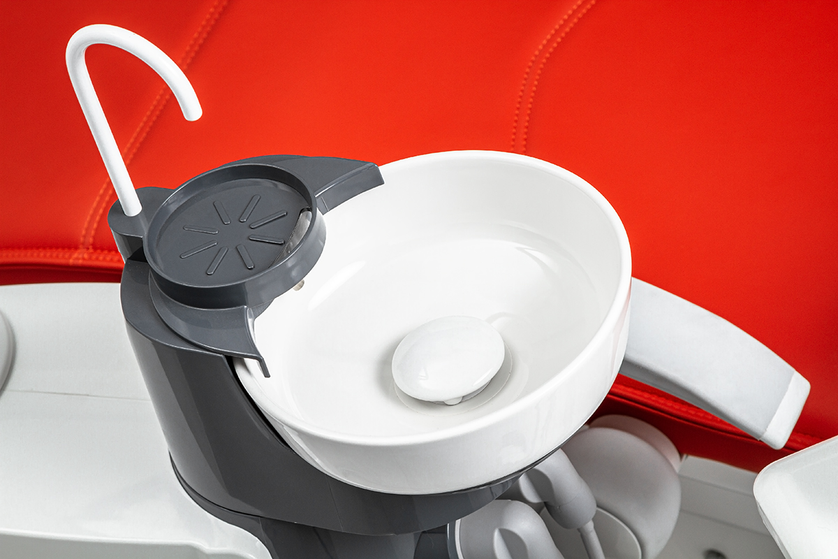 Плевательница, как одна из главных составляющих современной стоматологической установки, отличается высокой прочностью и широким функционалом. Она способна вращаться на 90 градусов. Материал, из которого она изготовлена — качественная керамика, которая гарантирует высокую прочность и долговечность. Также она оснащена дополнительными функциями, такими как подогрев воды и автоматическое обмывание.
