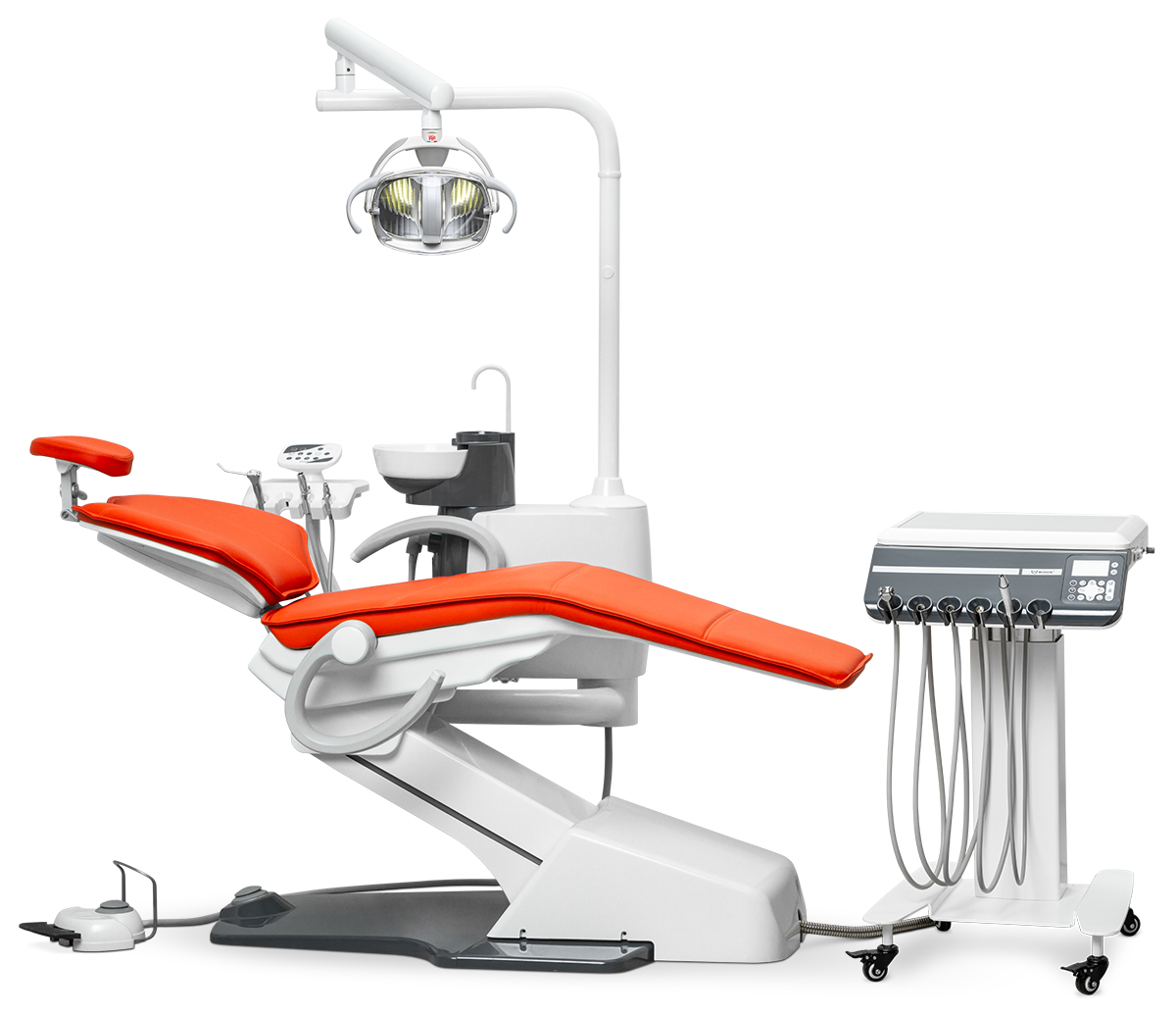 - Эксклюзивный дизайн модуля врача с дополнительным столом для инструментов, встраиваемый электрический мотор со светом и скейлер со светом.