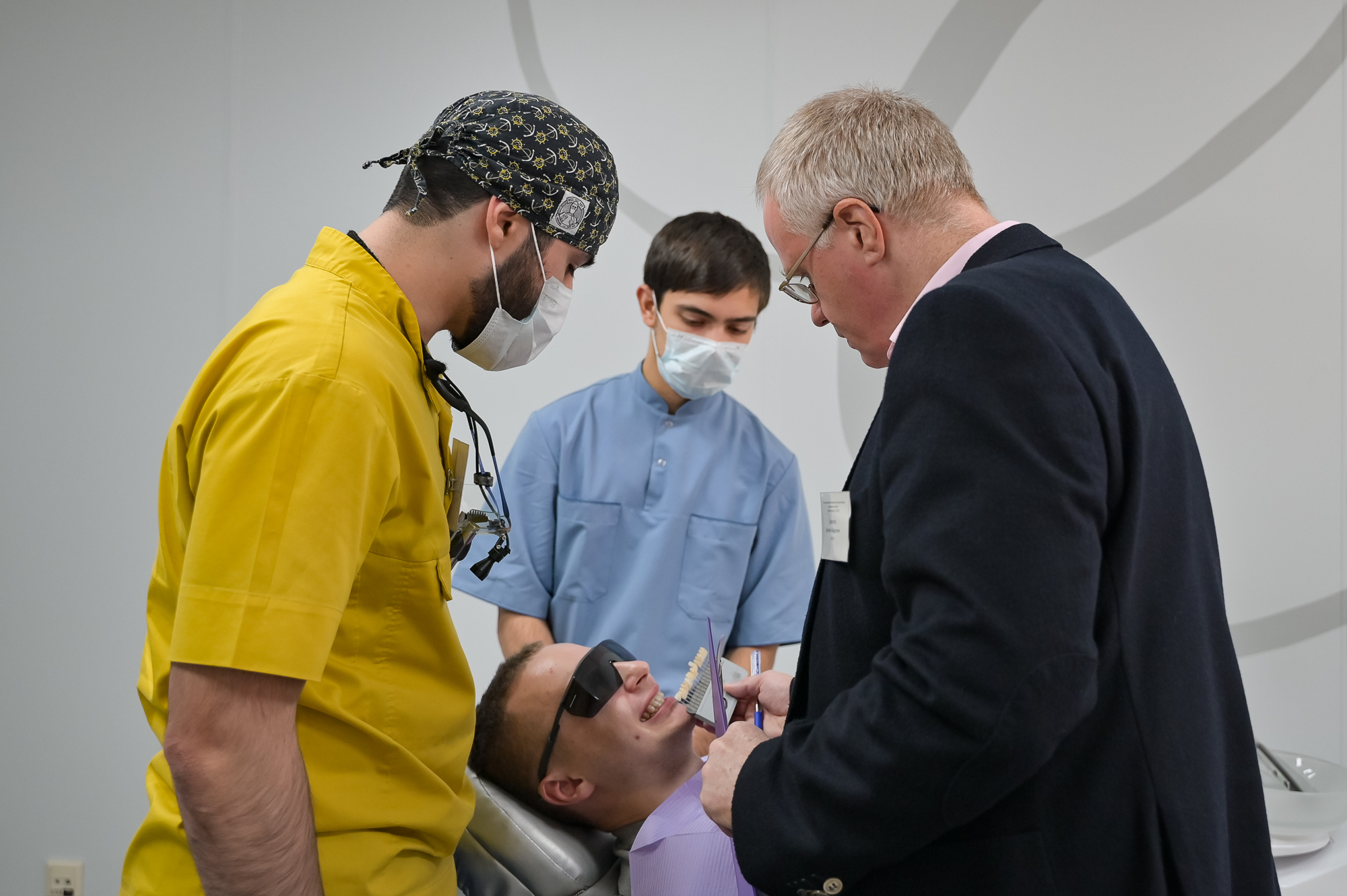 Чемпионат проходил в 2 этапа: две тройки конкурсантов одновременно проводили процедуру отбеливания в разных кабинетах, а члены жюри следили за каждой манипуляцией докторов, технологией проведения процедуры, рекомендациям пациентам, скоростью и качеством работы.