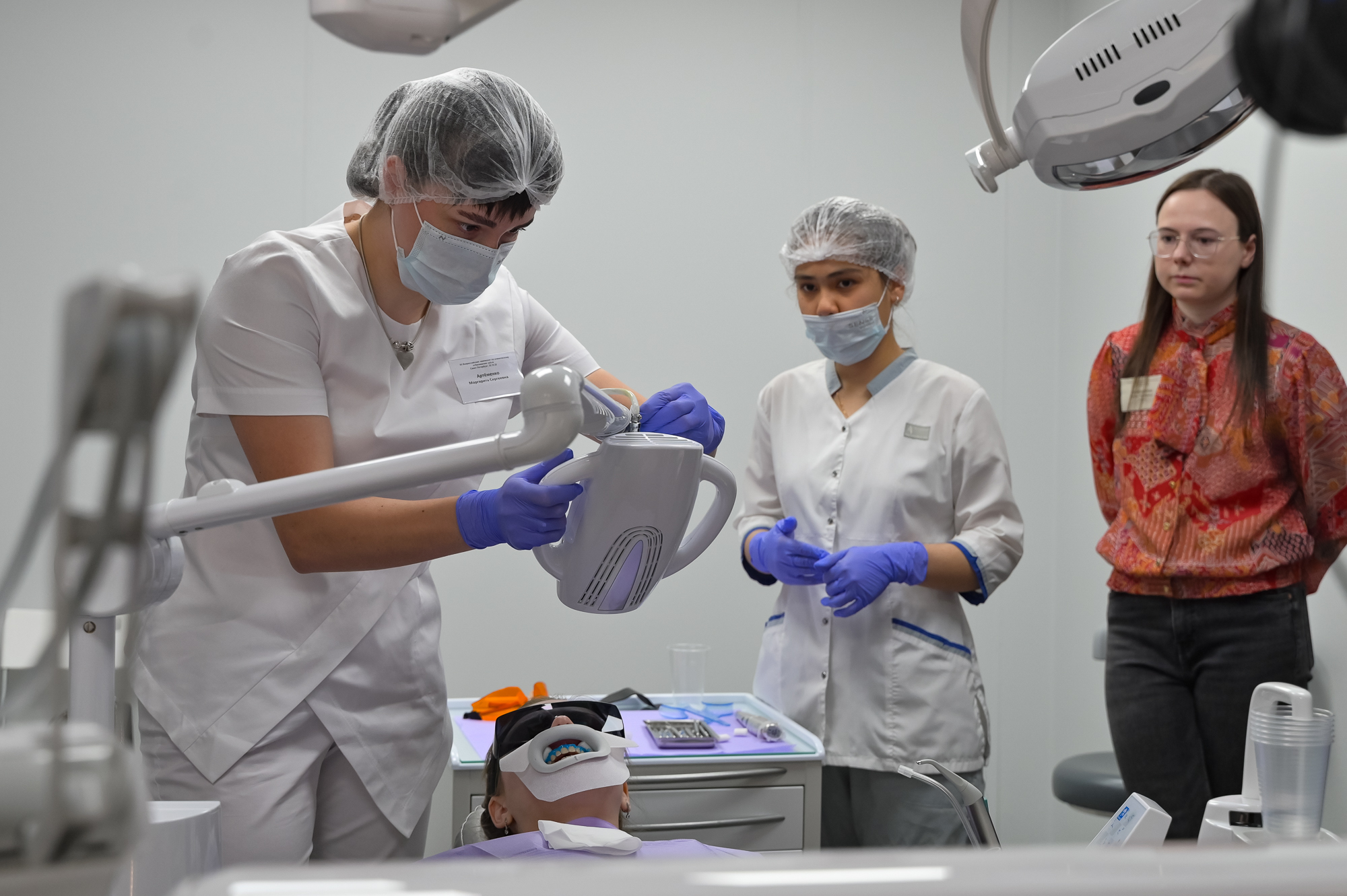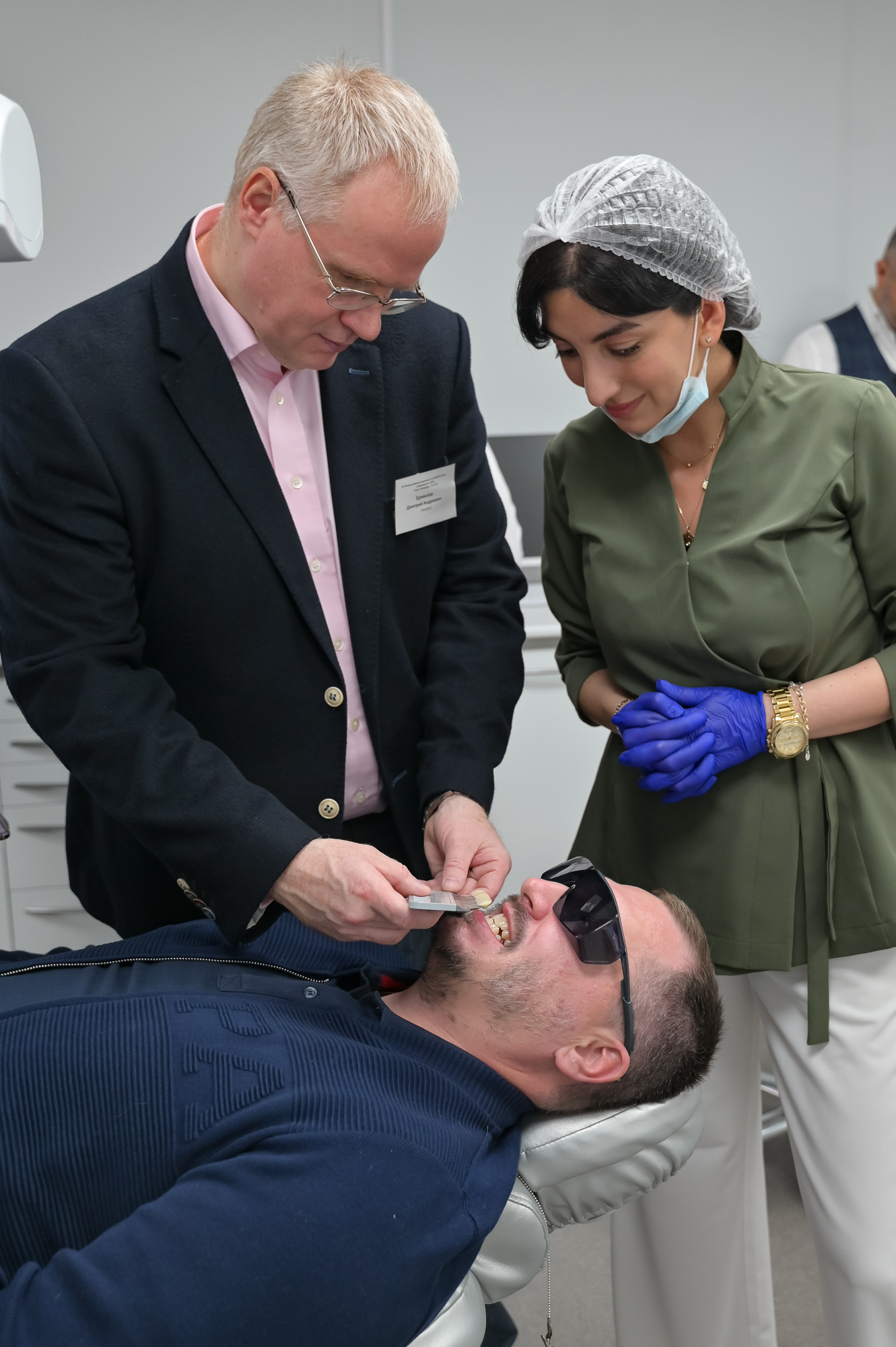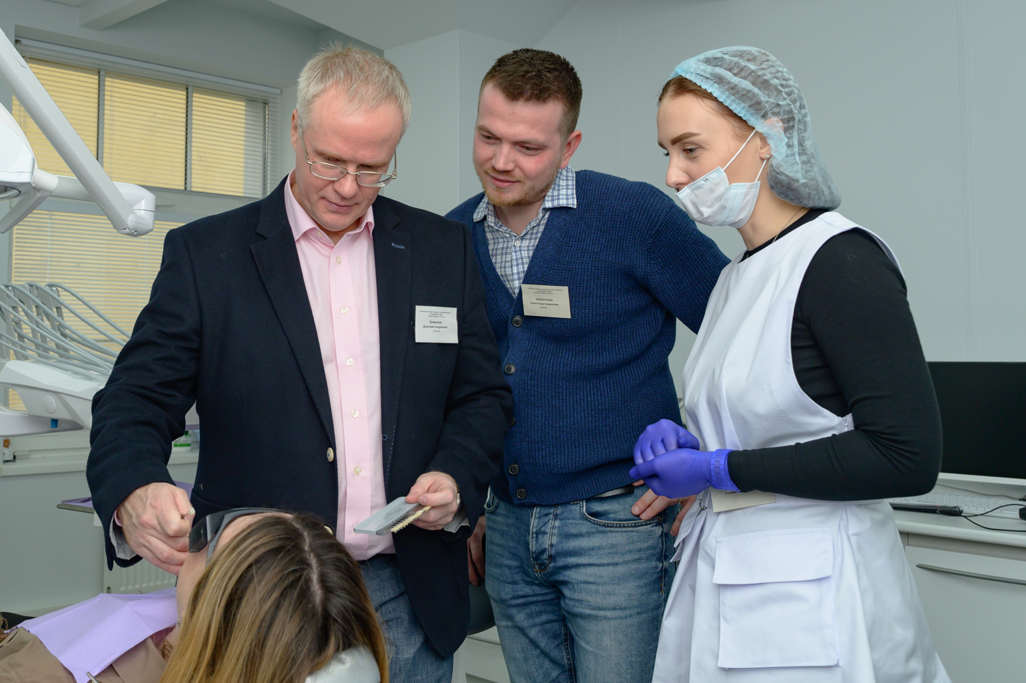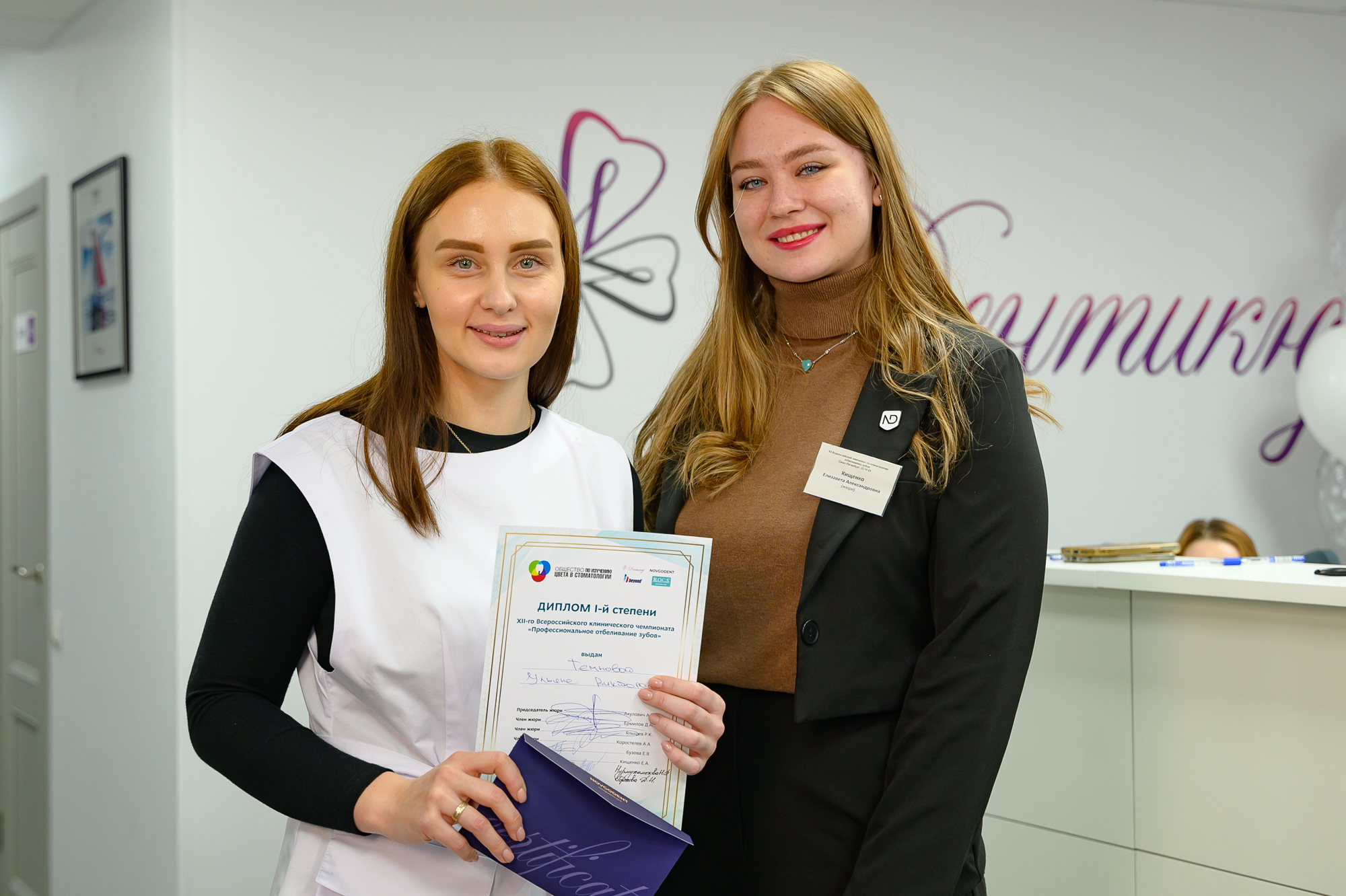 В составе жюри мы «соседствовали» вместе с лучшими профессионалами в сфере эстетической стоматологии: Андрей Викторович Акулович, Александр Андреевич Коростелев, Дмитрий Андреевич Ермилов, Нелли Разифовна Нурмухаметова, победительница первого чемпионата профессионального отбеливания зубов в истории Дарья Игоревна Горохова и победительница чемпионата 2022 года Екатерина Вадимовна Бузова.